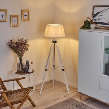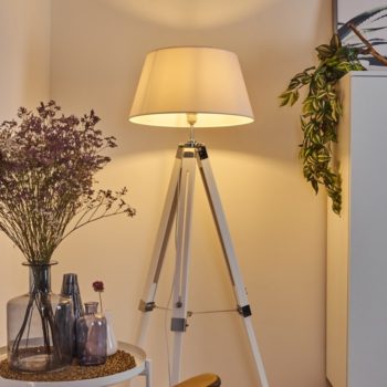 Čvrsta baza, drveni okvir i abažur od bijele tkanine. Klasična podna lampa je spremna. Staromodno? Nema šanse. Ova vrsta rasvjetnih tijela posebno uživa kontinuiranu popularnost, jer ne služi samo kao izvor svjetlosti, već je ponovno otkrivena kao element dizajna.