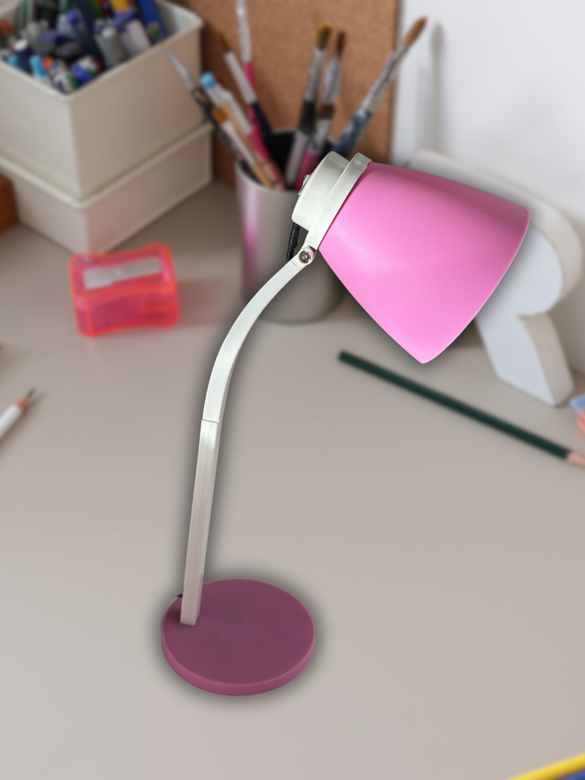 Roza boja sjenila lampi daje dekorativnu notu prostoru, pa je odličan izbor za spavaće sobe, dječije kutke ili kao dodatna rasvjeta uz krevet ili radni sto. Diskretan prekidač na kablu čini upotrebu jednostavnom i praktičnom, bez potrebe za dodatnim prekidačima na zidu.
