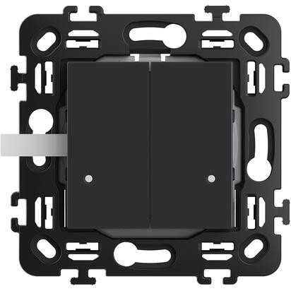 Wireless poveziva sklopka. Opremljena s dvije tipke za upravljanje dva različita poveziva uređaja za rasvjetu. Pojedina tipka se može neovisno povezati s jednim ili više uređaja. Nadžbukna instalacija (s obostrano ljepljiviM trakama u pakiranju) ili na podžbuknu kutiju. Integrirana LED za indikaciju niske razine baterije. Napajanje putem baterije od 3V tip CR2032 (dolazi s uređajem) s procijenjenom autonomijom od 8 godina – 2 modula
