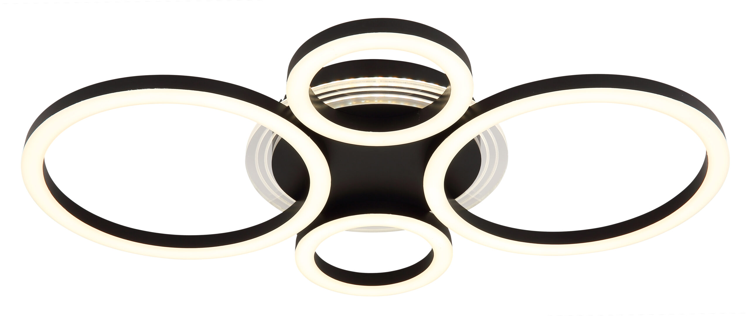 Plafonska lampa LORETTA 48039‑40 osvaja modernim i elegantnim dizajnom — četiri prstena u mat crnoj boji i akrilnim difuzorom stvaraju sofisticiranu i savremenu atmosferu. Sa integrisanom LED rasvjetom (40 W) i mogućnošću podešavanja boje svjetla (2700 K, 4500 K ili 6500 K), omogućava da prilagodiš osvjetljenje prostoru — od tople, ugodne ambijentalne svjetlosti do jake, funkcionalne rasvjete. Svjetlosni tok je efektivan i dovoljan za dnevne sobe, trpezarije, hodnike ili druge prostorije srednje veličine, dok dimabilna funkcija i memorija postavki dodatno olakšavaju korištenje i podešavanje svjetla nakon svakog paljenja.